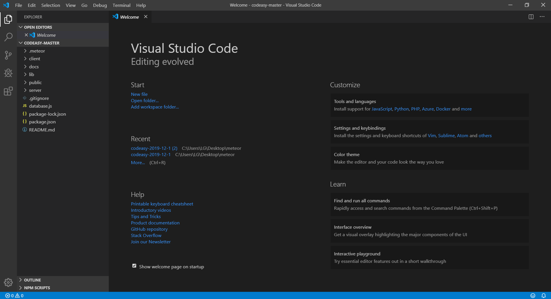 설치를 하고 실행 후 압축을 풀어줬던 폴더를 Visual Studio Code로 열어줍니다.