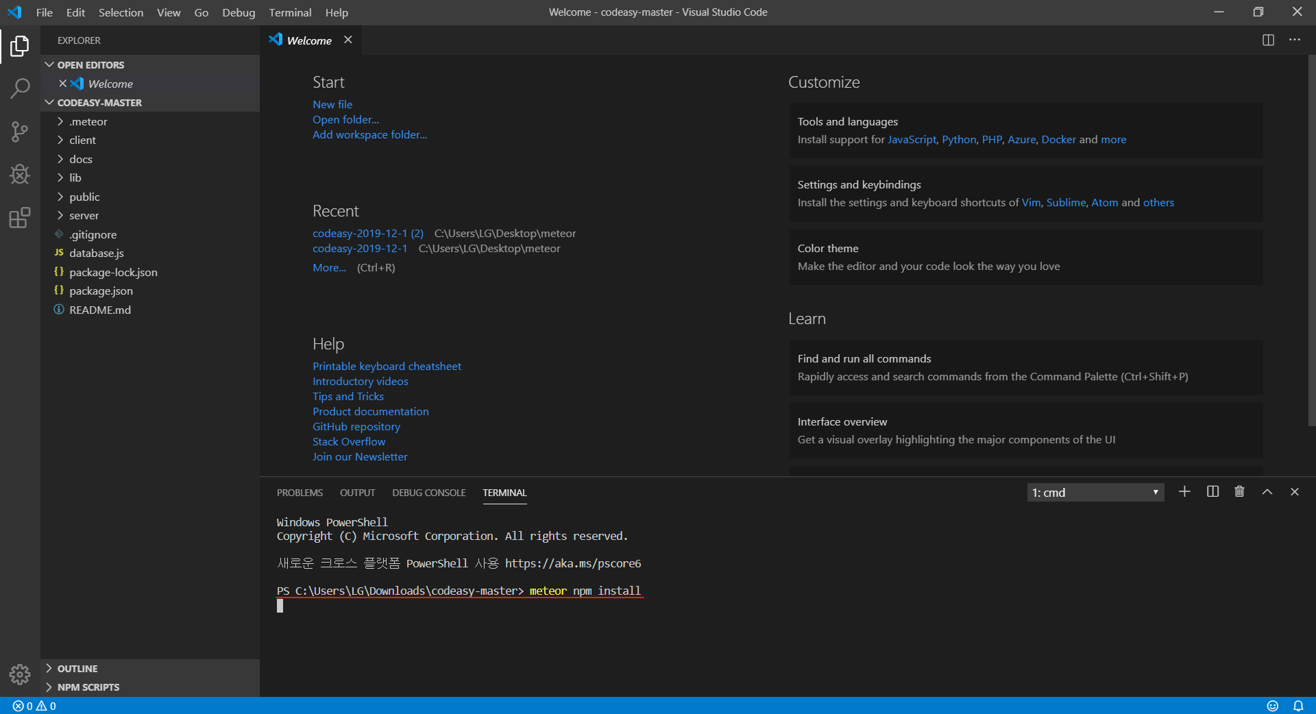 chocolatey가 설치 됐으면 이를 이용해 meteor를 설치해 줍시다.
