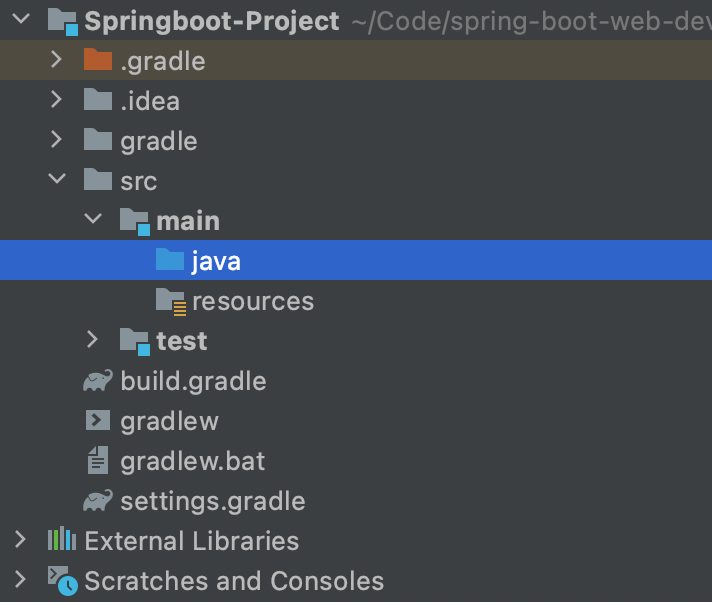 생성하고 나면 다음과 같은 폴더구조를 갖습니다.