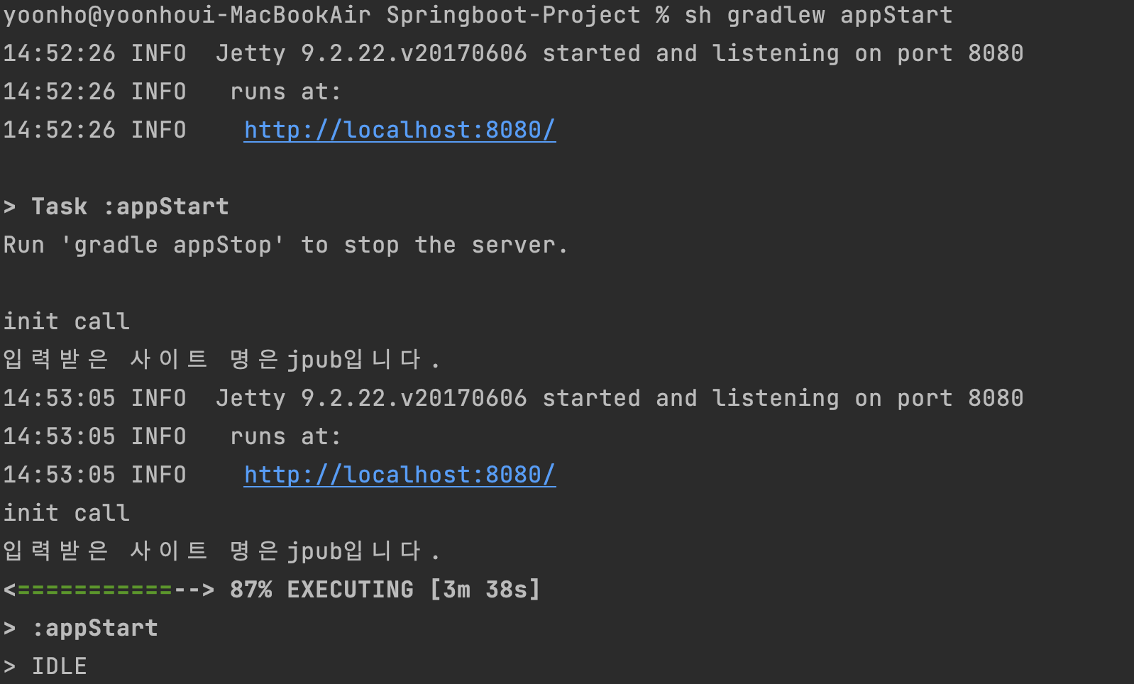 브라우저에서 localhost:8080/init 으로 접속합니다.