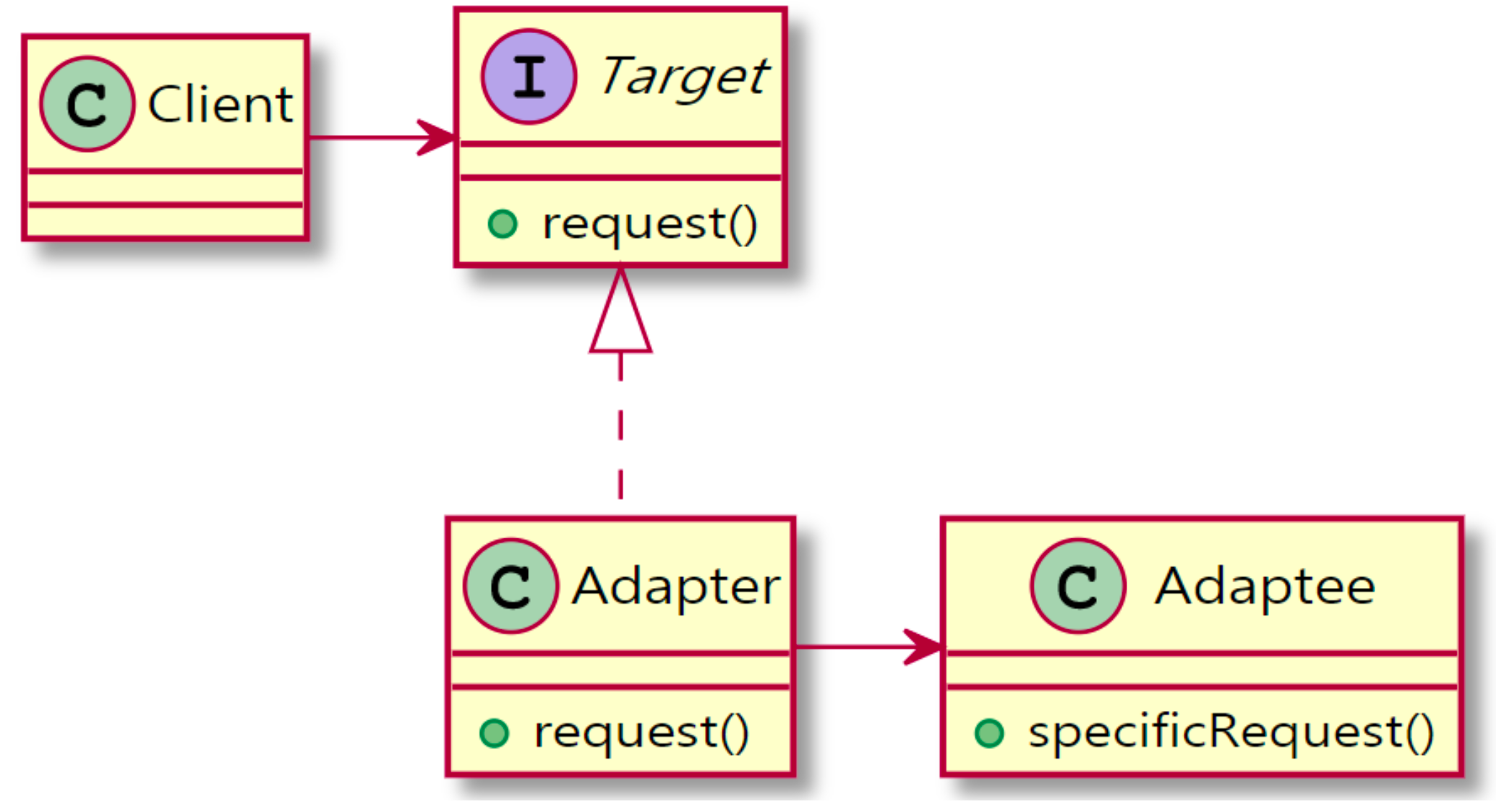 클래스의 인터페이스를 클라이언트가 원하는 형태의 인터페이스로 변환