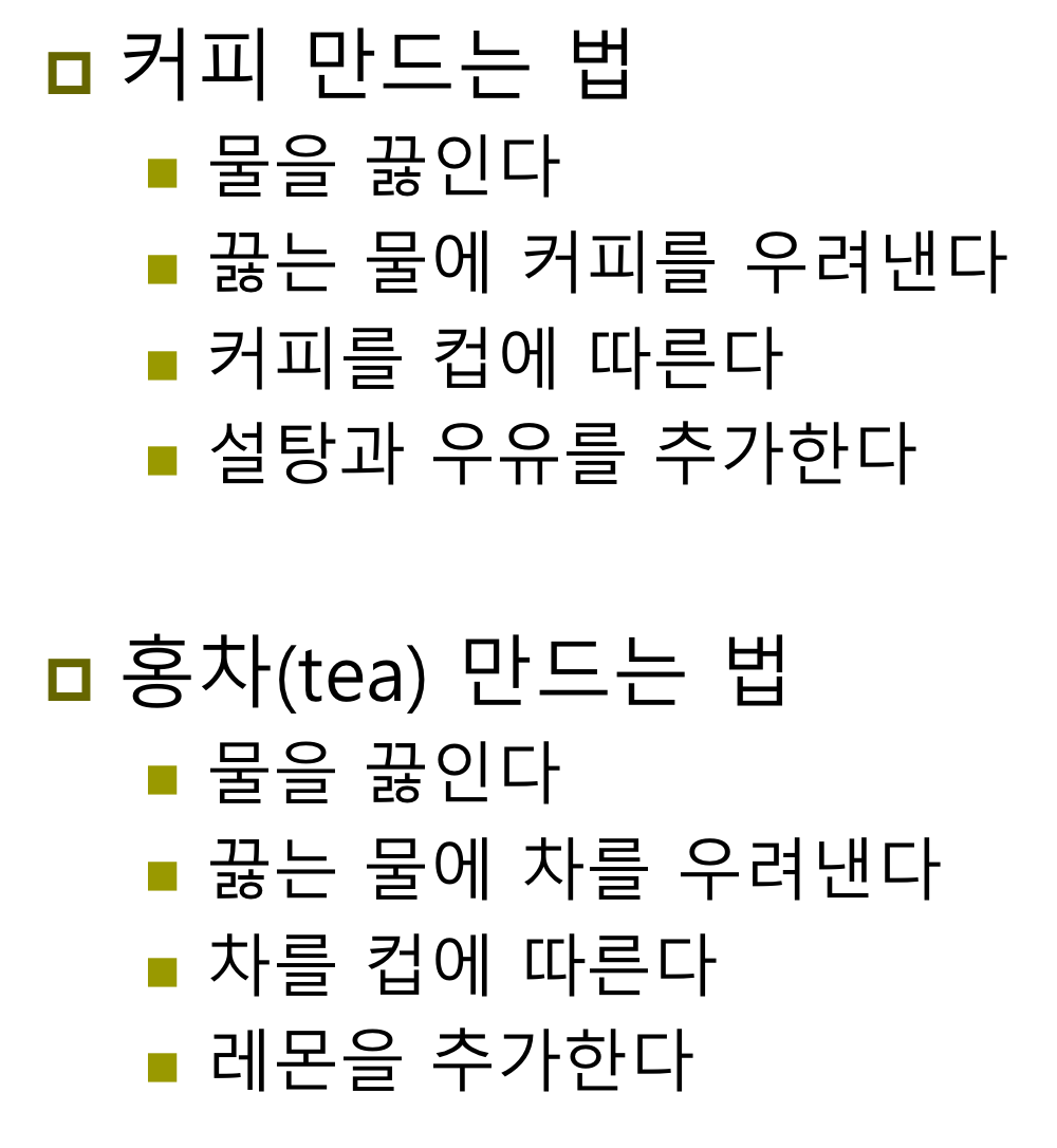 "물을 끓인다 (boilWater)"와 "컵에 따른다(pourInCup)"가 공통됨.