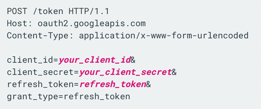 - 다음 요청으로 토큰을 재발급 받을 수 있음 https://oauth2.googleapis.com/token