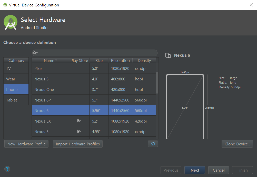 폰기종을 선택하는데 Nexus 6를 선택하고 Next합니다