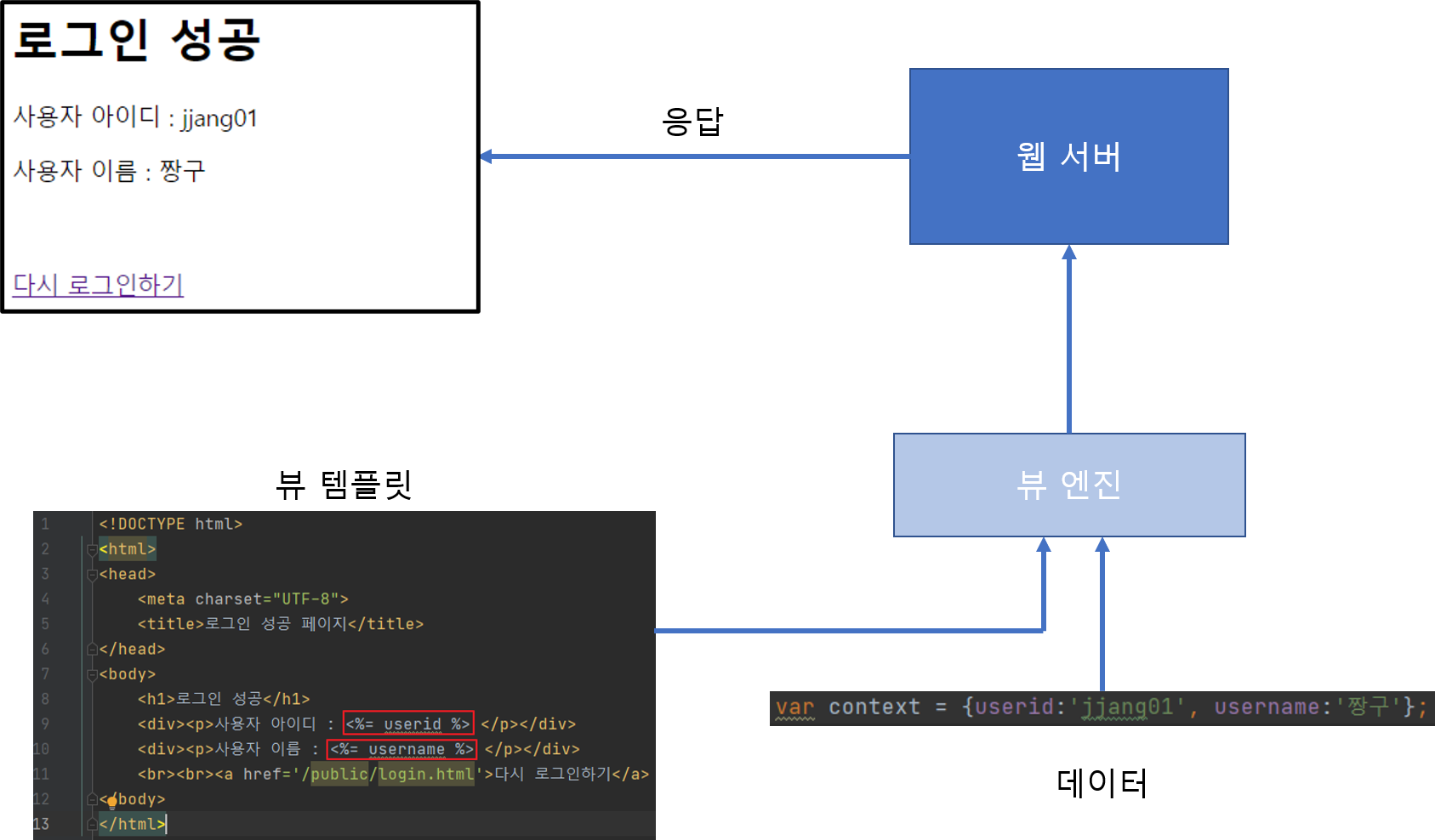 <div><p>사용자 이름 : <%= username %> </p></div>