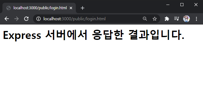 res.end('<h1>Express 서버에서 응답한 결과입니다.</h1>');