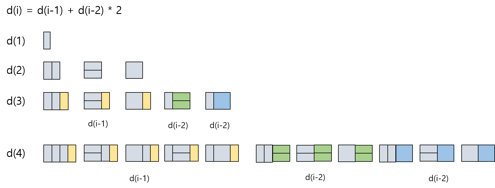 따라서 d(i) = d(i-1) + d(i-2) * 2